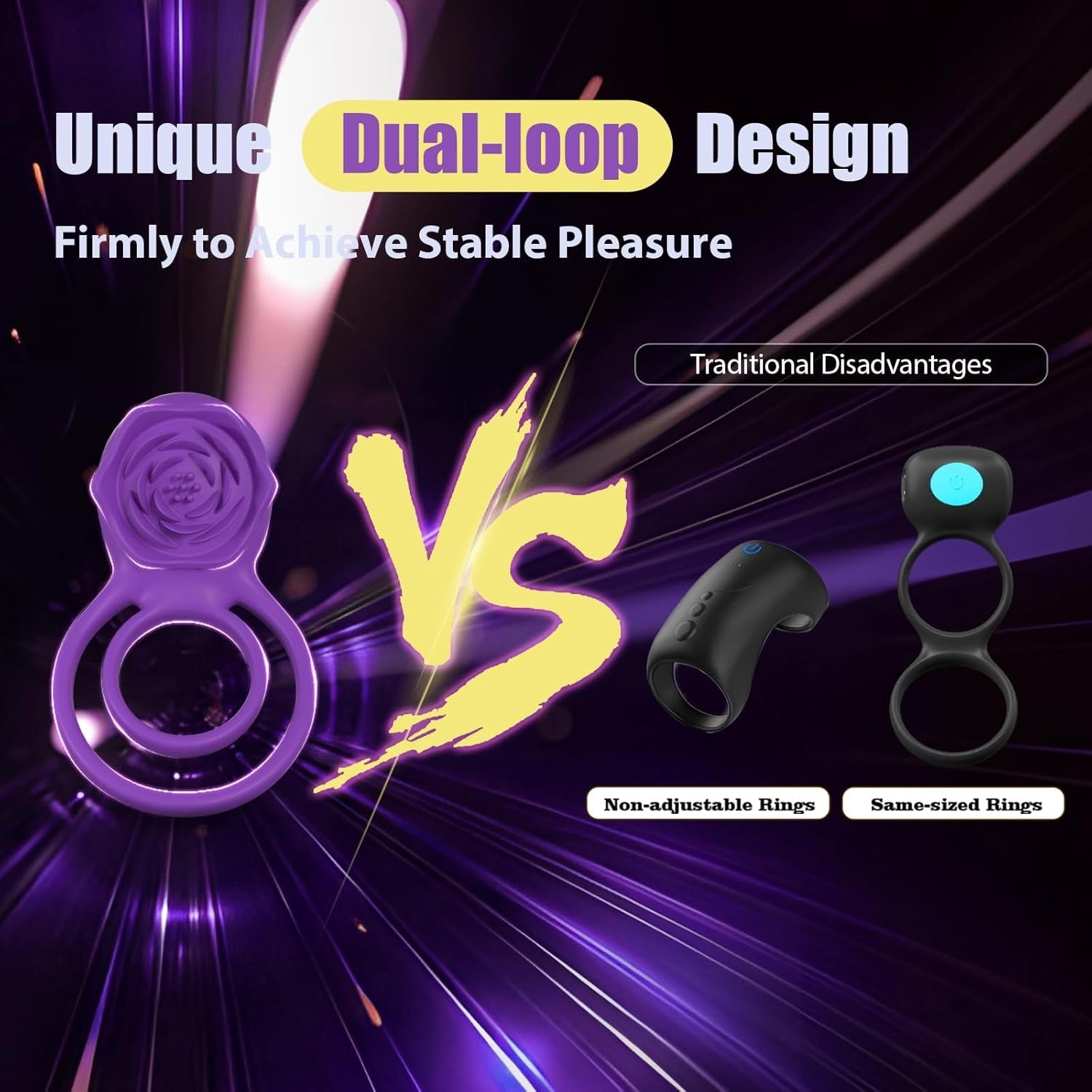 Deeper. Firmer. More Controlled: The dual vibrator ring features an adjustable double-ring design that gently holds your dick and balls. This cock ring boosts staying power for extended satisfaction, by reducing blood flow and trapping circulation