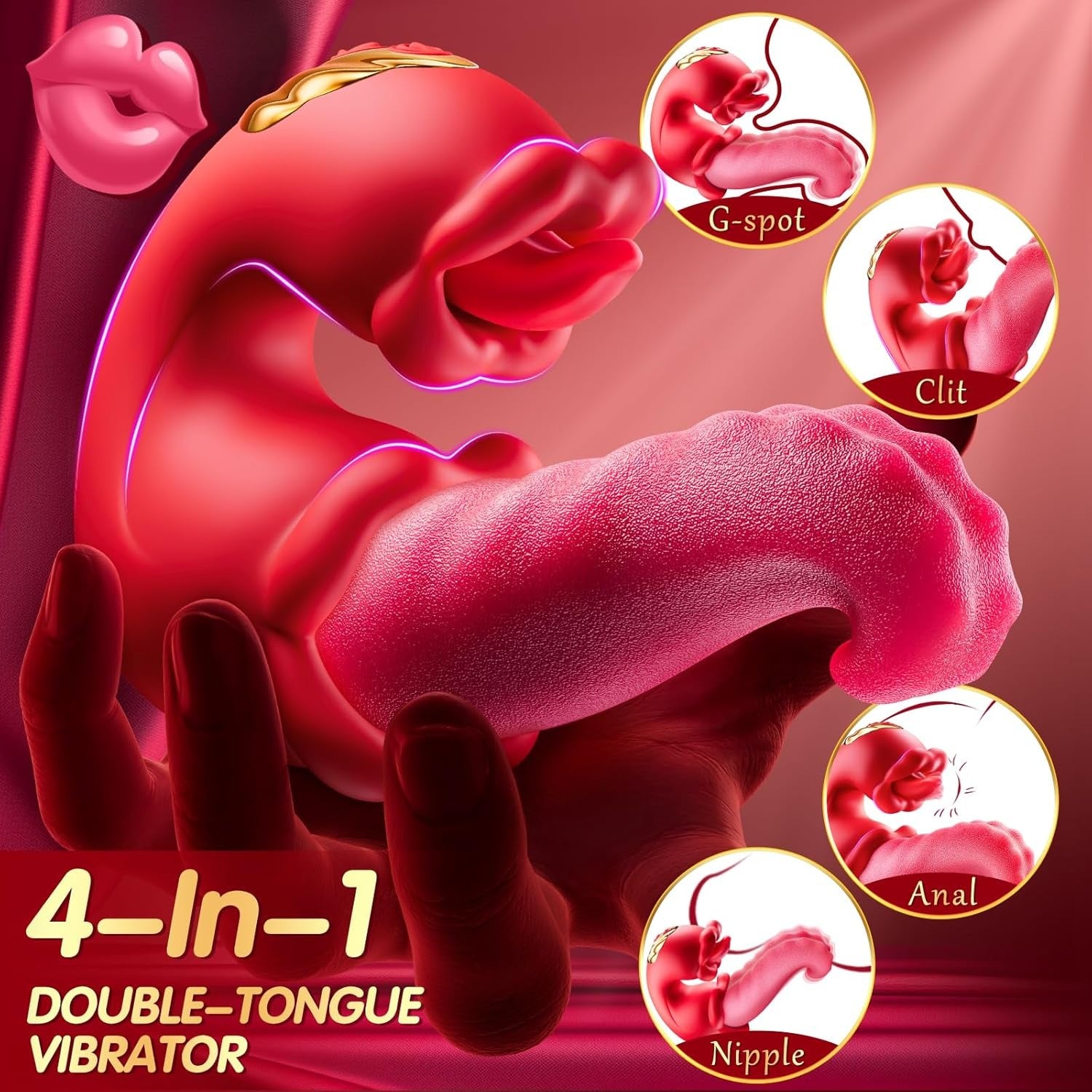 10 Modes Tongue G-Spot Vibrator Sex Toys - The mouth and tongue are standout features of this rose toy. Unlike other female sex toys or dildos, it doesn't just simulate tongue licking; it imitates the realistic action of lips and tongue licking and swirling. Offering multiple sensations, this vibrator provides triple stimulation from inside and out. Explore our range of sexual pleasure tools for women.